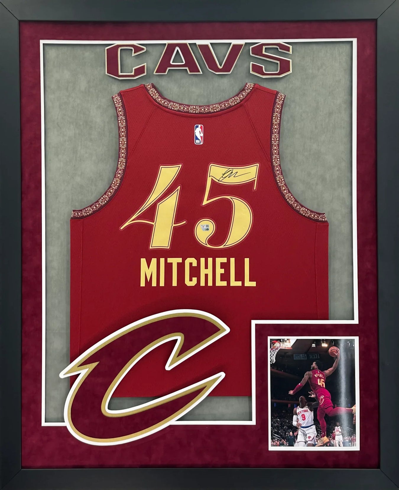 Cleveland Cavaliers Donovan Mitchell Hand Signed Autographed Authentic Wine Jersey Framed with Suede Matting, XL 3D Logo, & Cutout Lettering Includes Fanatics Authentic COA