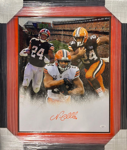 Cleveland Browns Nick Chubb Hand Signed Autographed 16x20 Photo Framed with Suede Matting Includes JSA COA