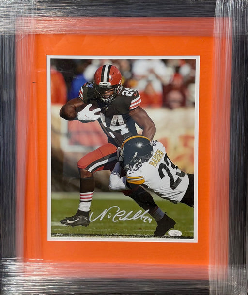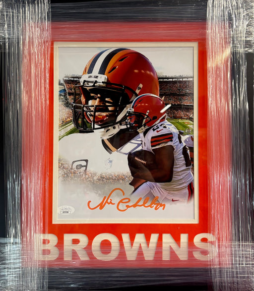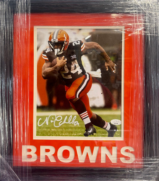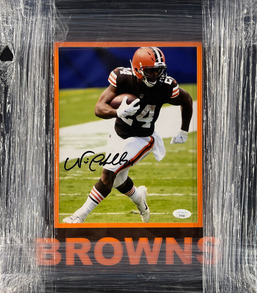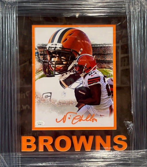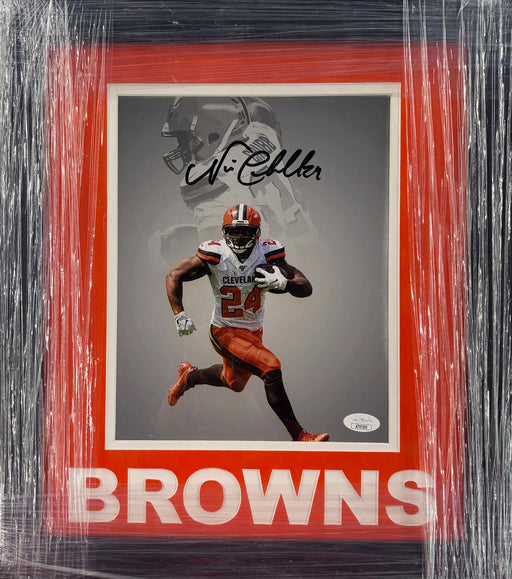 Cleveland Browns Nick Chubb Hand Signed Autographed 8x10 Photo Framed with Suede Matting & Cutout Lettering Includes JSA COA