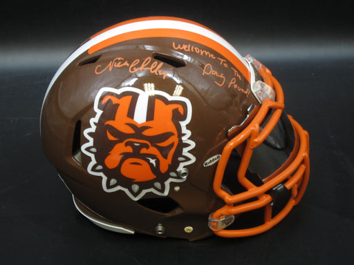 Cleveland Browns Nick Chubb Hand Signed Autographed Authentic Full-Size Helmet with Welcome To The Dawg Pound! Inscription Includes Beckett Witnessed COA