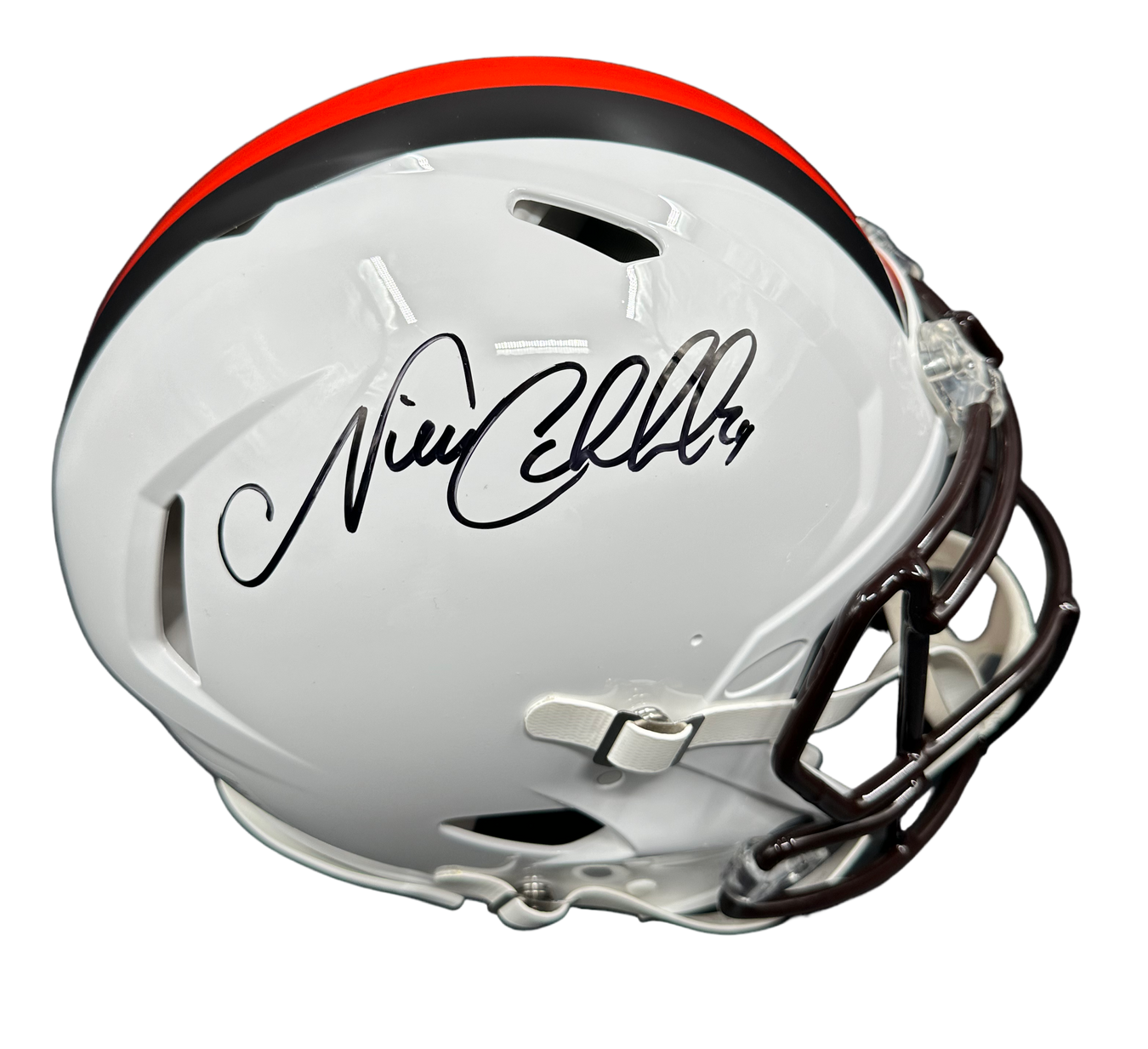 Cleveland Browns Nick Chubb Hand Signed Autographed Alternate White Mini Helmet Includes Beckett Witnessed COA