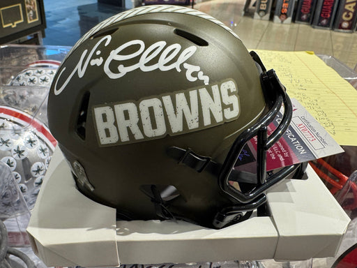 Cleveland Browns Nick Chubb Hand Signed Autographed Salute to Service Speed Mini Helmet Includes JSA COA