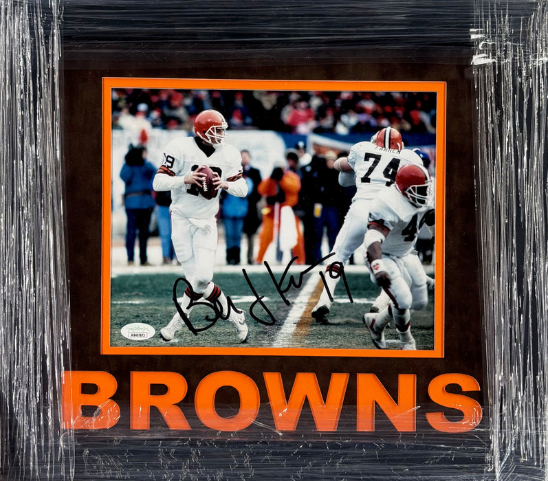 Cleveland Browns Bernie Kosar Hand Signed Autographed 8x10 Photo Framed with Suede Matting & Cutout Lettering Includes JSA COA