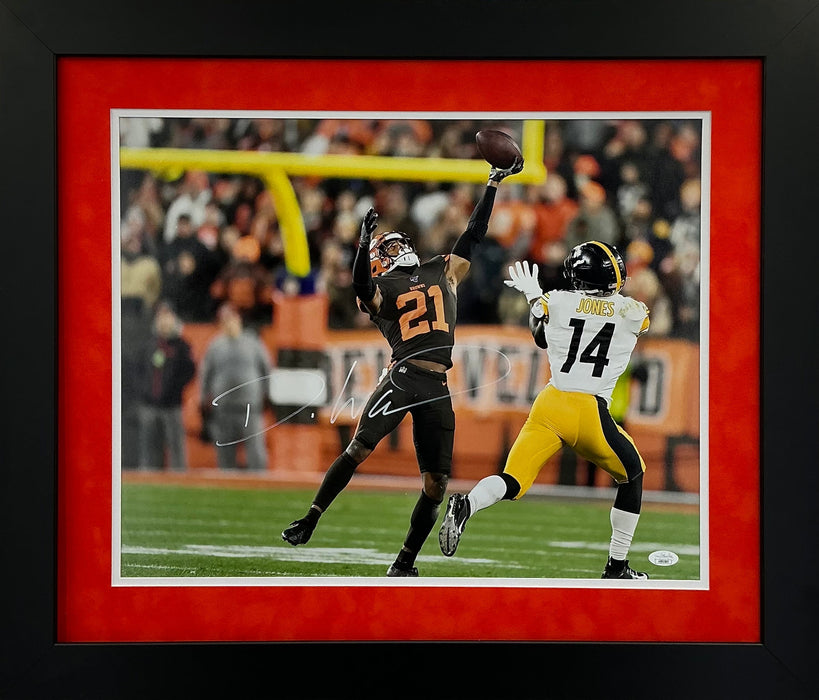 Cleveland Browns Denzel Ward Hand Signed Autographed 16x20 Photo Framed with Suede Matting Includes JSA COA