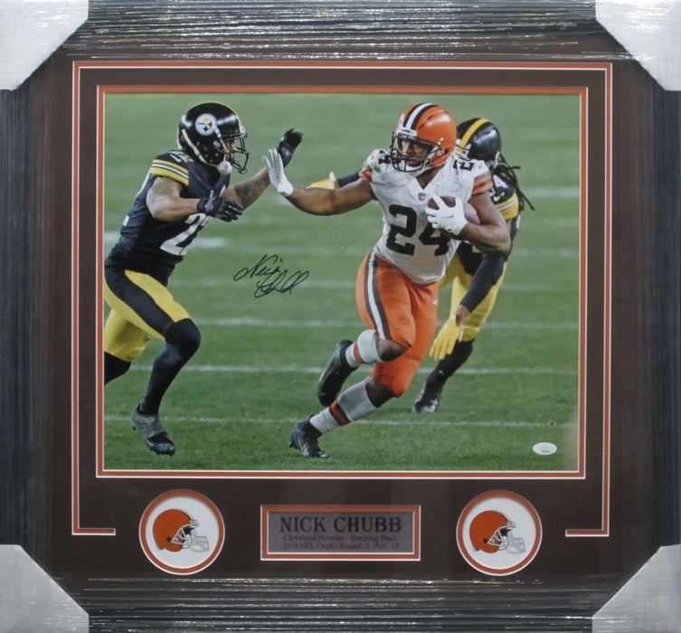 Cleveland Browns Nick Chubb Hand Signed Autographed 16x20 Photo Framed with Matting Includes JSA COA